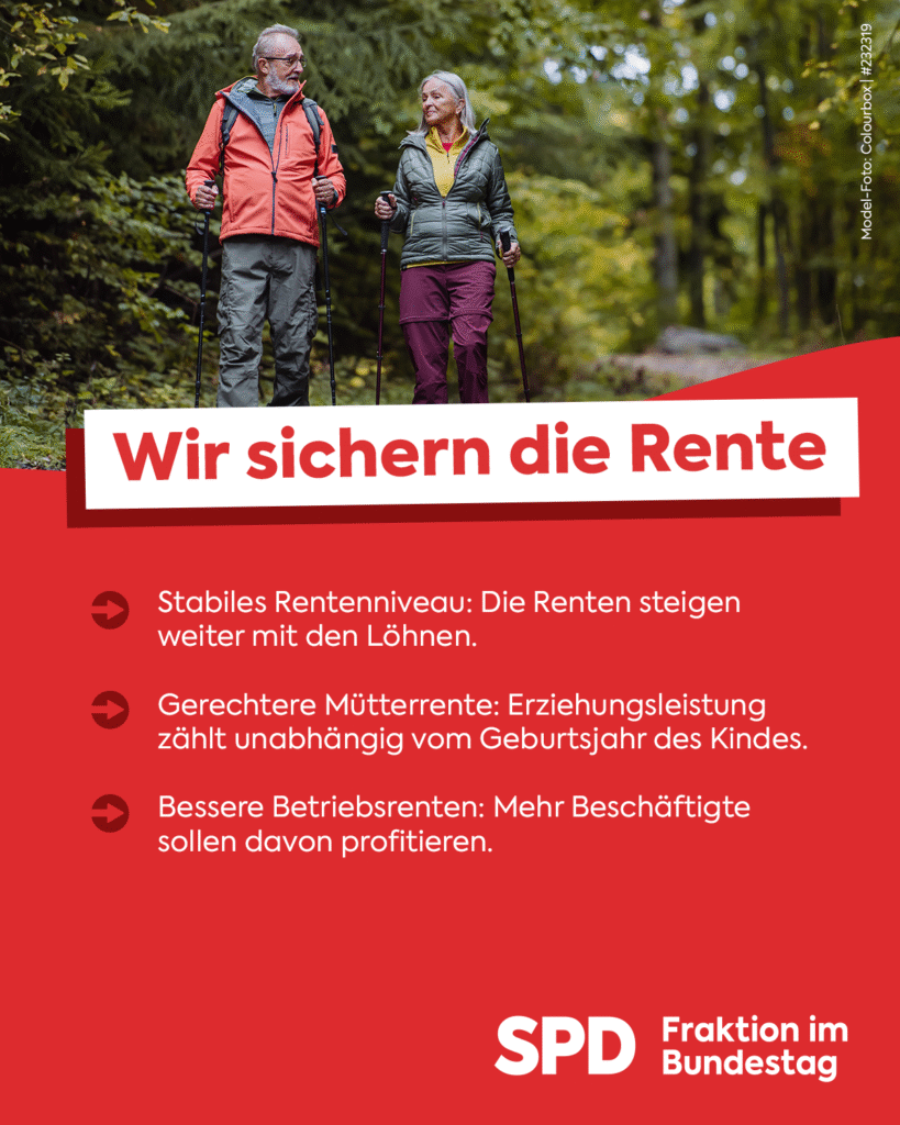 Im parlamentarischen Alltag dieser Woche hat uns vor allem das Rentenpaket beschäftigt, das wir endlich in erster Lesung im Bundestag beraten haben. Die Botschaft ist klar: Auf die gesetzliche Rente ist Verlass. Wir verlängern die Haltelinie – das Rentenniveau fällt auch künftig nicht unter 48 Prozent – und die Renten steigen weiterhin mit der Lohnentwicklung. Ab 2028 wird zudem die Erziehungsleistung aller Eltern unabhängig vom Geburtsjahr der Kinder gleich anerkannt. Davon profitieren rund zehn Millionen Menschen, vor allem Frauen, die sich lange um ihre Kinder gekümmert haben. Dass noch vor der ersten Lesung Teile der Unionsfraktion mit Blockade drohen – obwohl das nun zu beratende Paket im Kabinett unter Beteiligung von Friedrich Merz beschlossen wurde – zeigt, wie dringend vereinbarte Kompromisse auch eingehalten werden müssen. Jens Spahn sollte dafür sorgen, dass seine Fraktion zur Verlässlichkeit zurückkehrt.