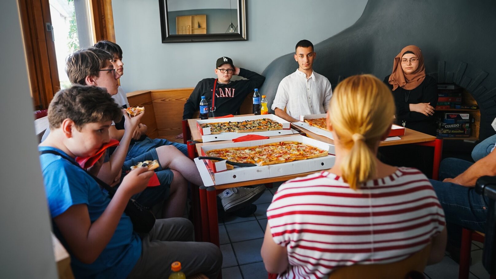 Pizza kommt dazu, Gespräche auch in kleinen Gruppen