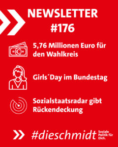 Über 5,7 Millionen Euro für den Wahlkreis! Am heutigen Mittwoch hat der Haushaltsausschuss des Deutschen Bundestages Mittel für die Sanierung kommunaler Einrichtungen bereitgestellt. Mit der sogenannten „Sportmilliarde“ stärkt der Bund Investitionen in Turnhallen, Frei- und Hallenbäder … Weiterlesen - Newsletter 175